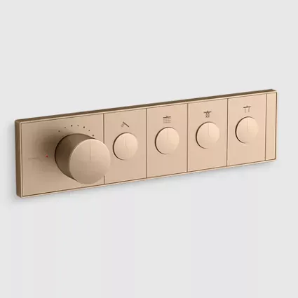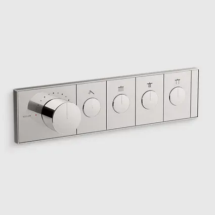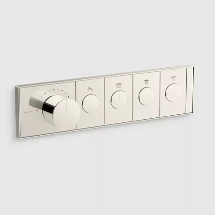 Anthem mechanical controls offer an innovative, yet intuitive approach to showering. Advanced outlet control provides independent access to each shower component, offering precise command over temperature and volume—and ensuring a personalized experience.