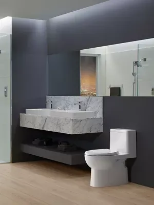 One-piece design integrates the tank and bowl for a sleek, seamless look.