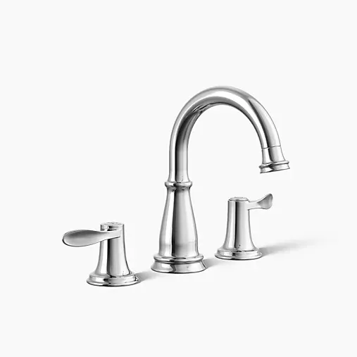 - A widespread faucet consists of three separate components — two handles (one for hot water and one for cold water) and a spout. These components are typically installed with 8 to 16 inches of space between them.