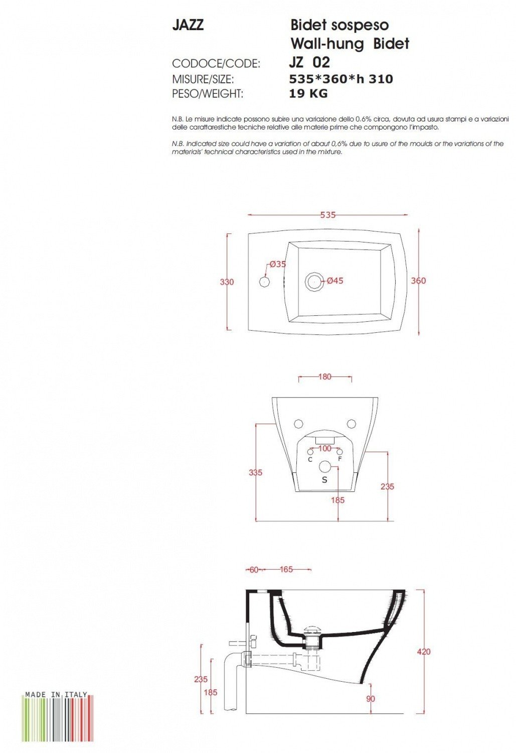 Artceram JAZZ Bide Inkaso