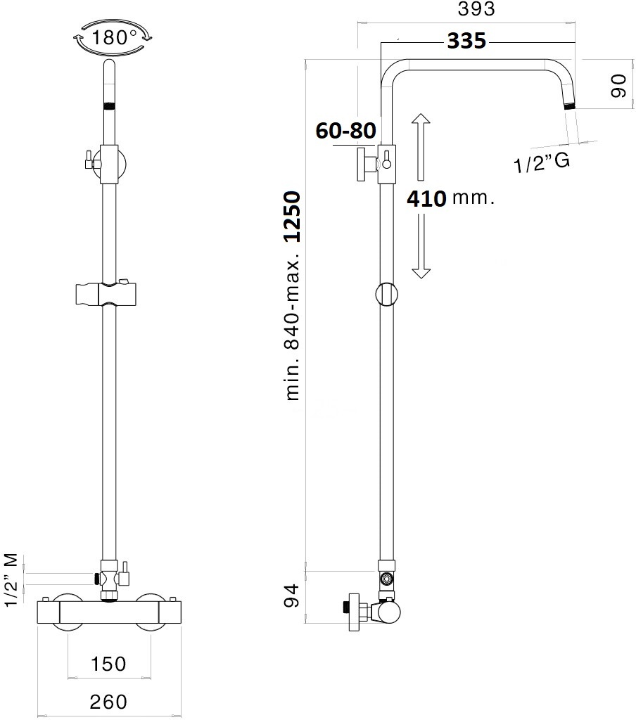 E prodhuar nga material inox (acciaio), rezistente dhe e qëndrueshme. Me tub Ø 24 mm, e orientueshme dhe e rregullueshme në lartësi. E pajisur me mbajtëse dushi dhe mishelator termostatik me devijator të jashtëm për kontroll të saktë dhe përdorim praktik.